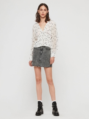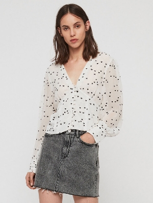 Kalp Puantiyeli Beyaz Bluz